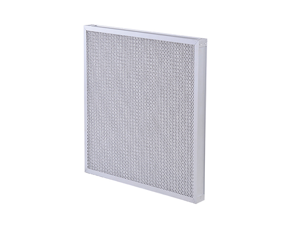 鋁波紋網(wǎng)過濾器采用多層鋁網(wǎng)經(jīng)輾壓成波浪形,以正確的角度彼此交叉疊合排列而成,多層金屬鋁波紋網(wǎng)是以不同的密度,孔徑由粗到細(xì)的排列,使空氣通過濾網(wǎng)時(shí)多次改變流動方向,增大其集塵能力及效率。