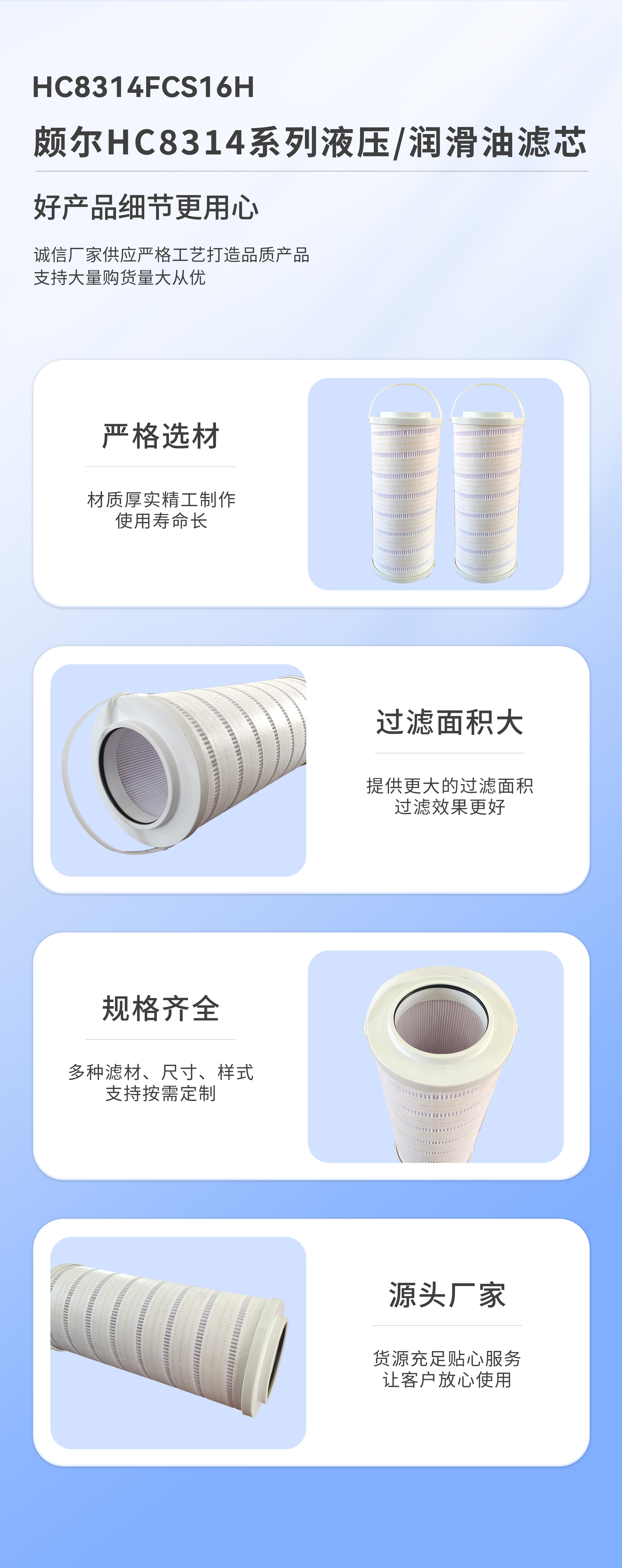當前位置 : 主頁 > 產品中心 > 濾芯 > 油濾芯 -頗爾HC8314系列液壓/潤滑油濾芯